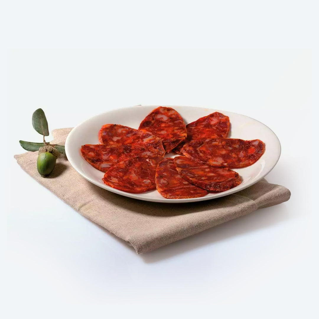 El Chorizo Ibérico Pre-Cortado es una auténtica delicia española, elaborado con carne de cerdo de alta calidad y condimentos tradicionales. Curado lentamente, tiene un sabor intenso, ligeramente picante y un aroma ahumado característico de los embutidos artesanales ibéricos.