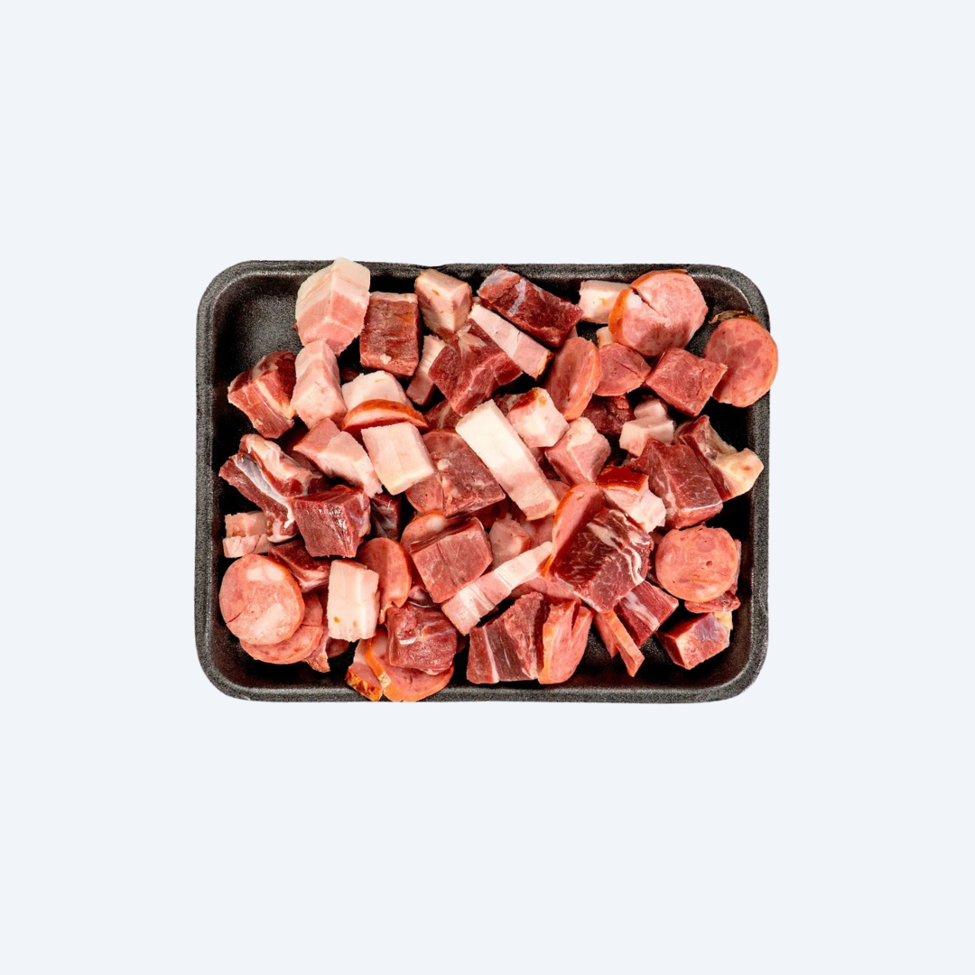 Composto por cortes como costelinha, pé, orelha, rabo e paio, o mix é ideal para quem deseja praticidade sem abrir mão da autêntica experiência da feijoada completa.